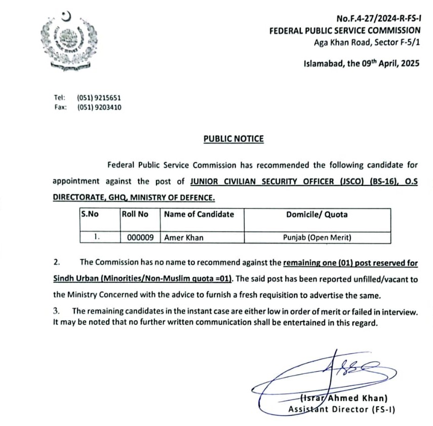 Disclaimer: Official website of FPSC is primary source of information for candidates, therefore, no claim of any candidate shall be accepted if the information intimated on FPSC website is overlooked/ignored by the candidate. Therefore, candidates are required to frequently visit FPSC's website in order to be aware of latest developments.