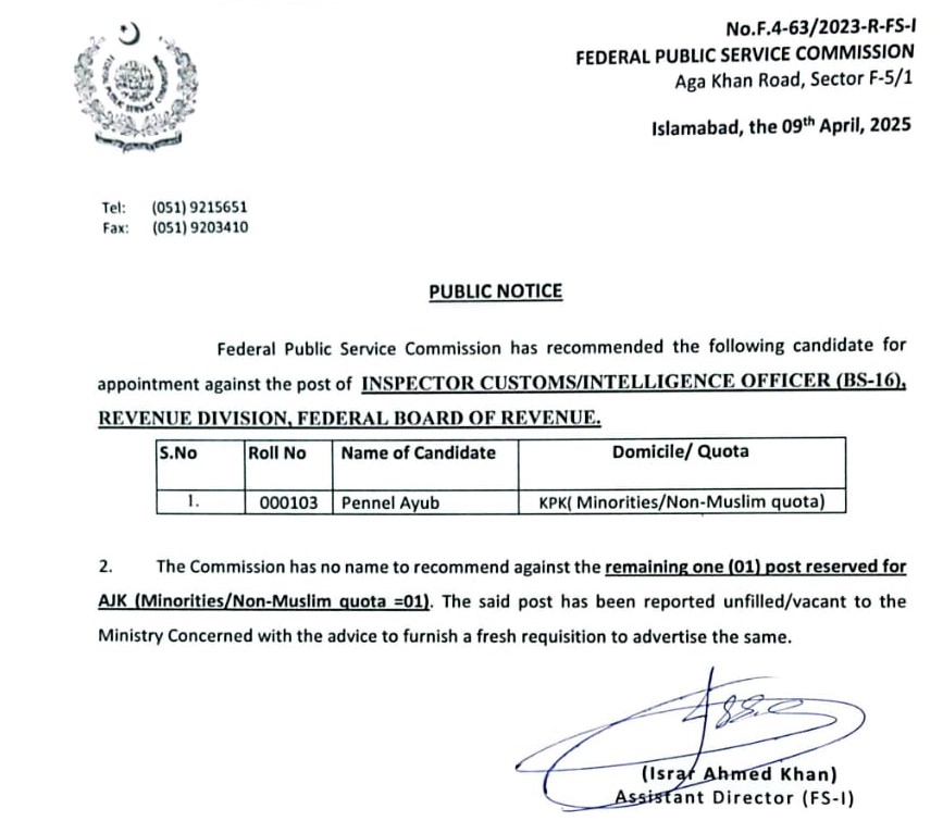 Disclaimer: Official website of FPSC is primary source of information for candidates, therefore, no claim of any candidate shall be accepted if the information intimated on FPSC website is overlooked/ignored by the candidate. Therefore, candidates are required to frequently visit FPSC's website in order to be aware of latest developments.